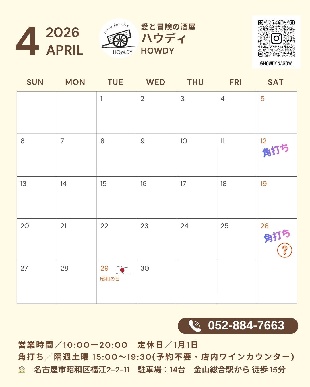 2026年4月の営業カレンダー
